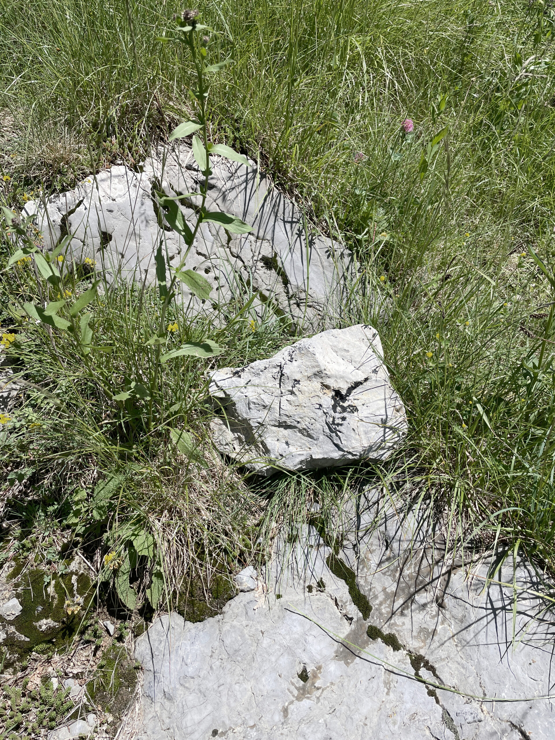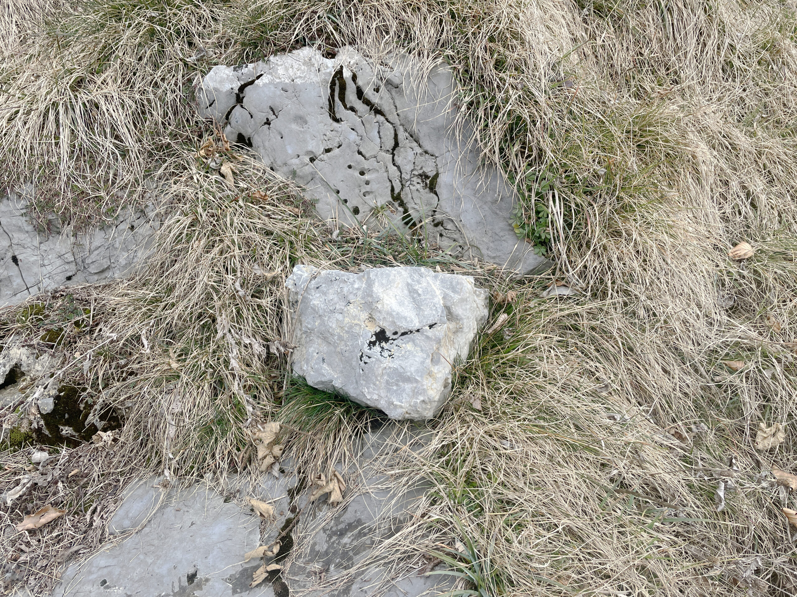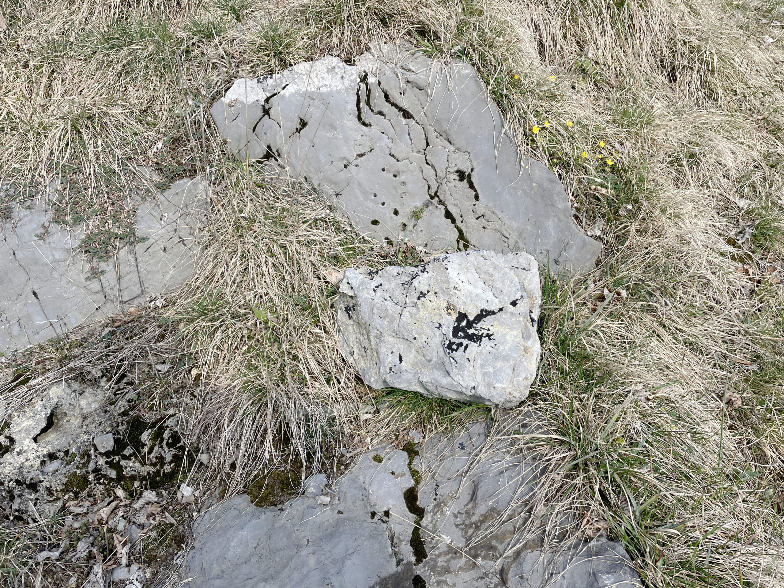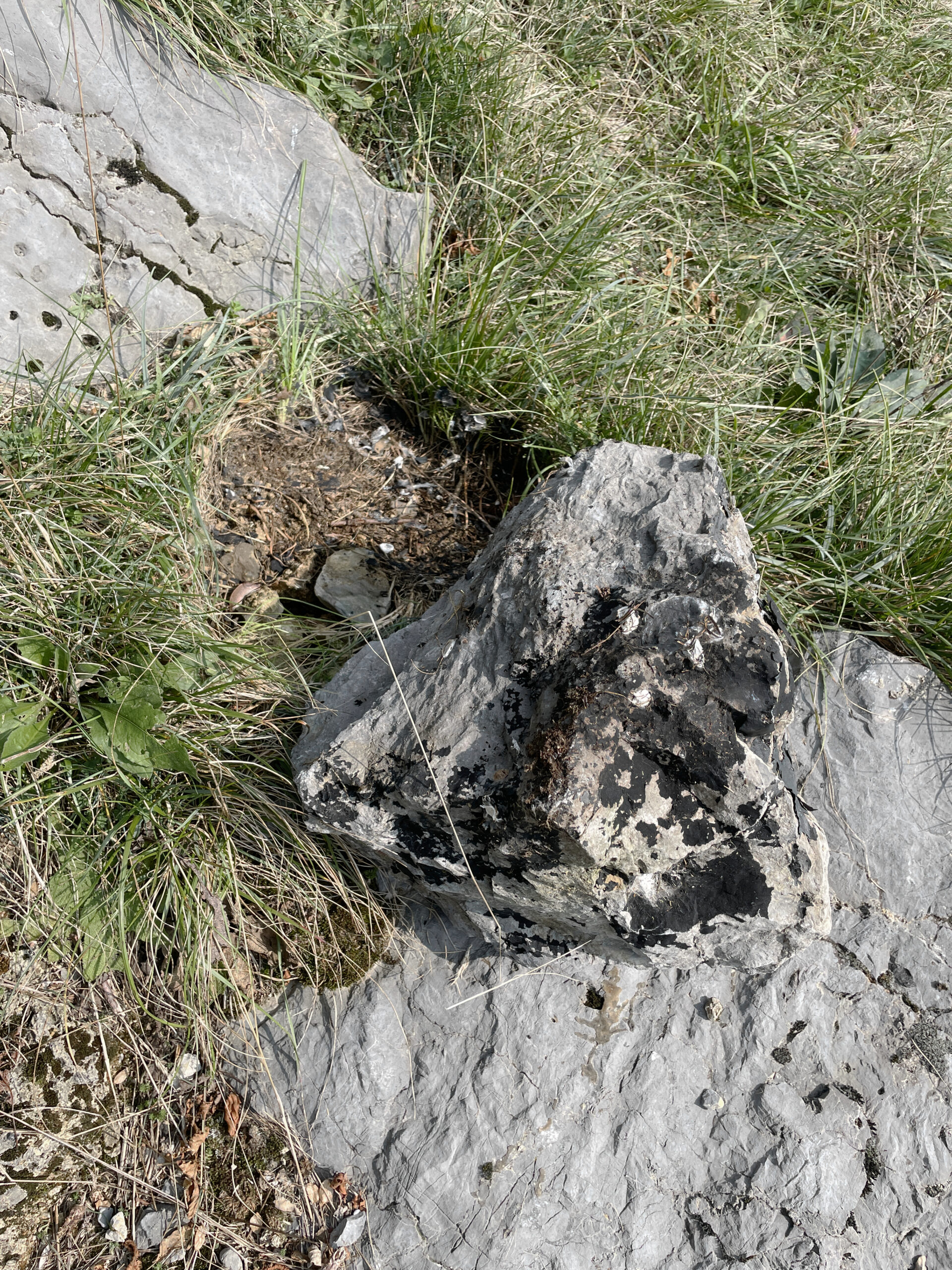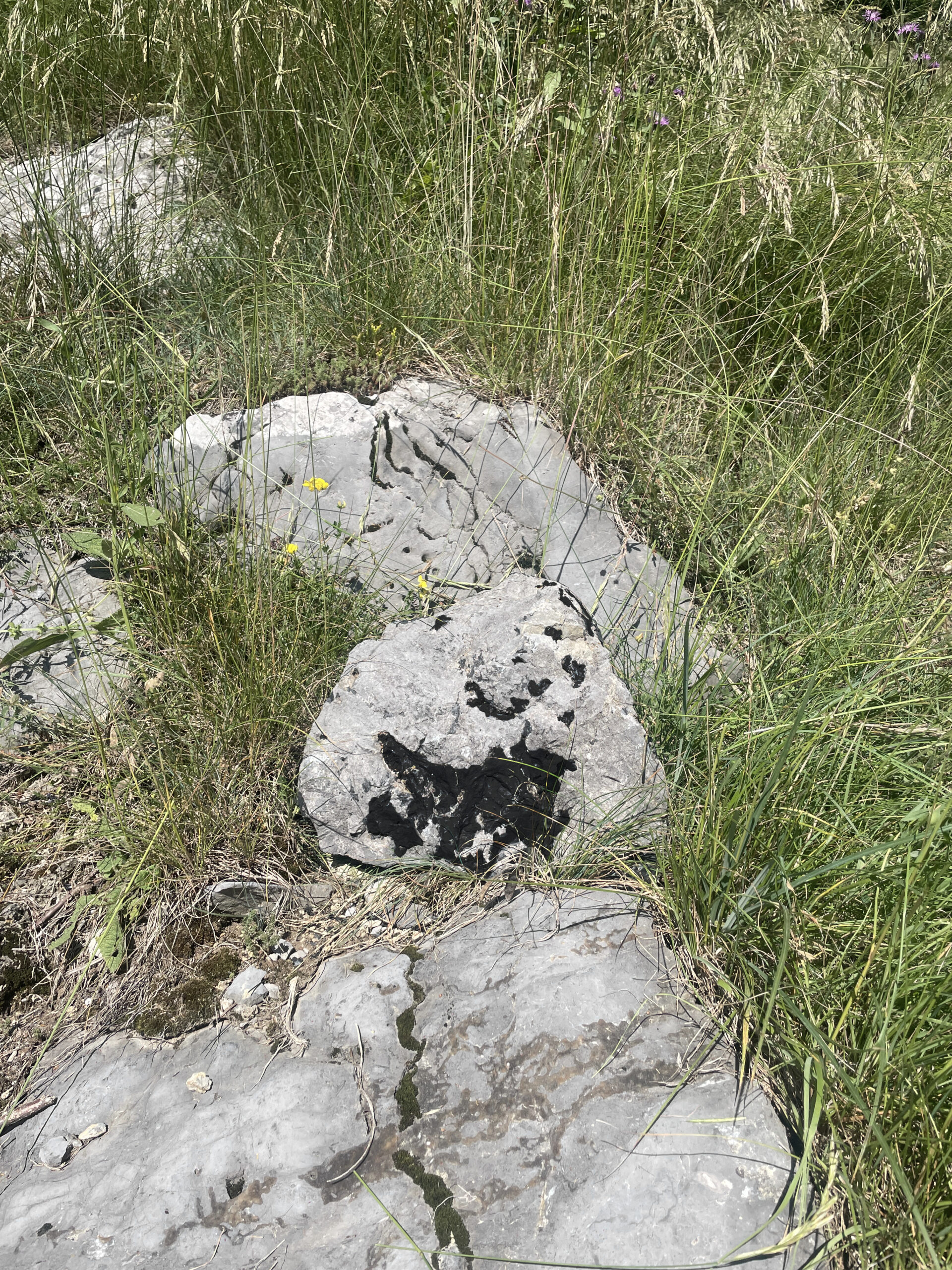 A stone was taken from the mountain and painted with a special matt black colour, ‘flattening’ its appearance as much as possible. The stone thus became a contour or a shape seen from afar, losing its spatiality. Then the stone was brought back to the place where it was originally found and left there in the wild. In the following months, the stone started peeling off, revealing its original nature and losing the black coating.