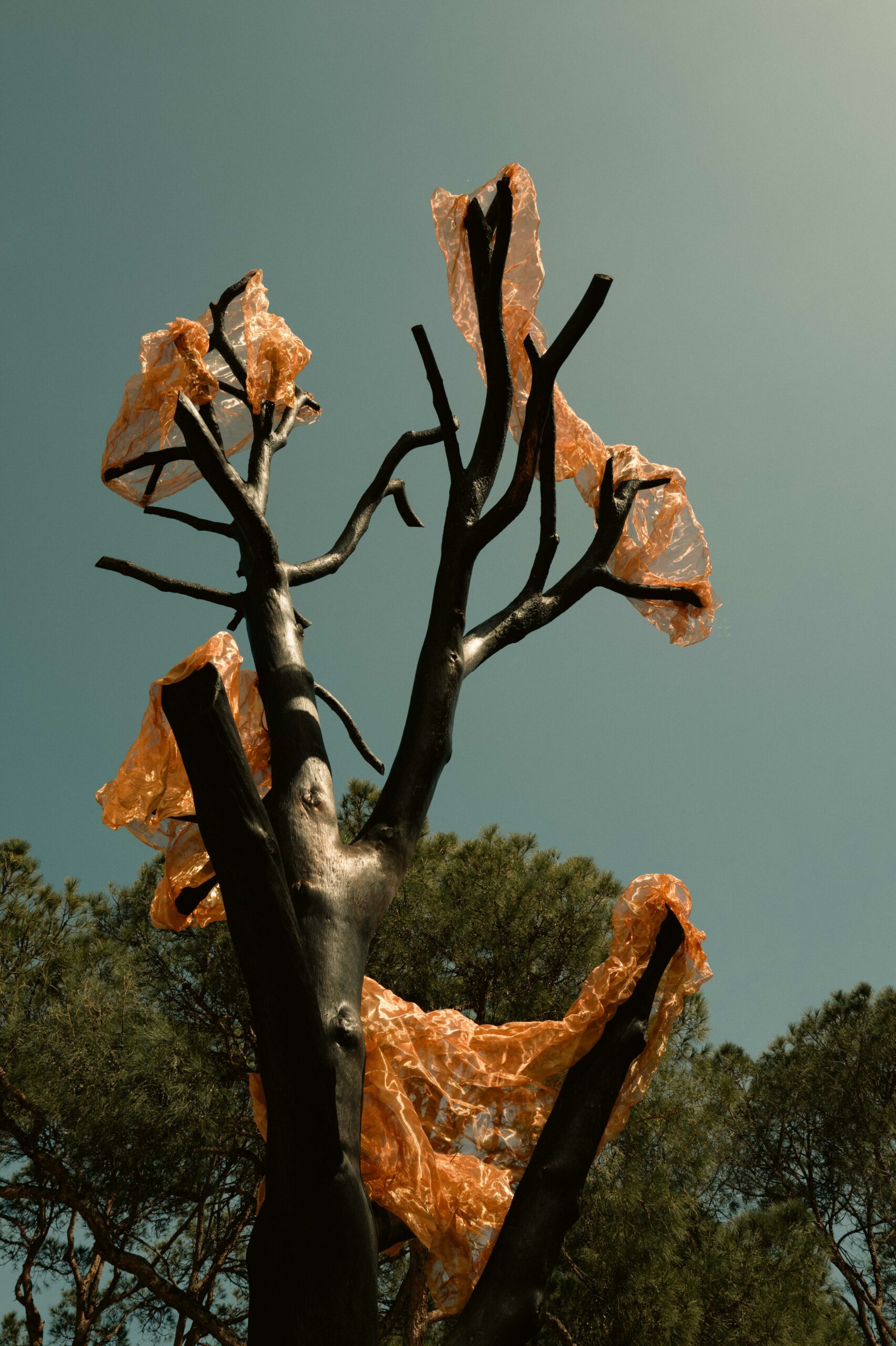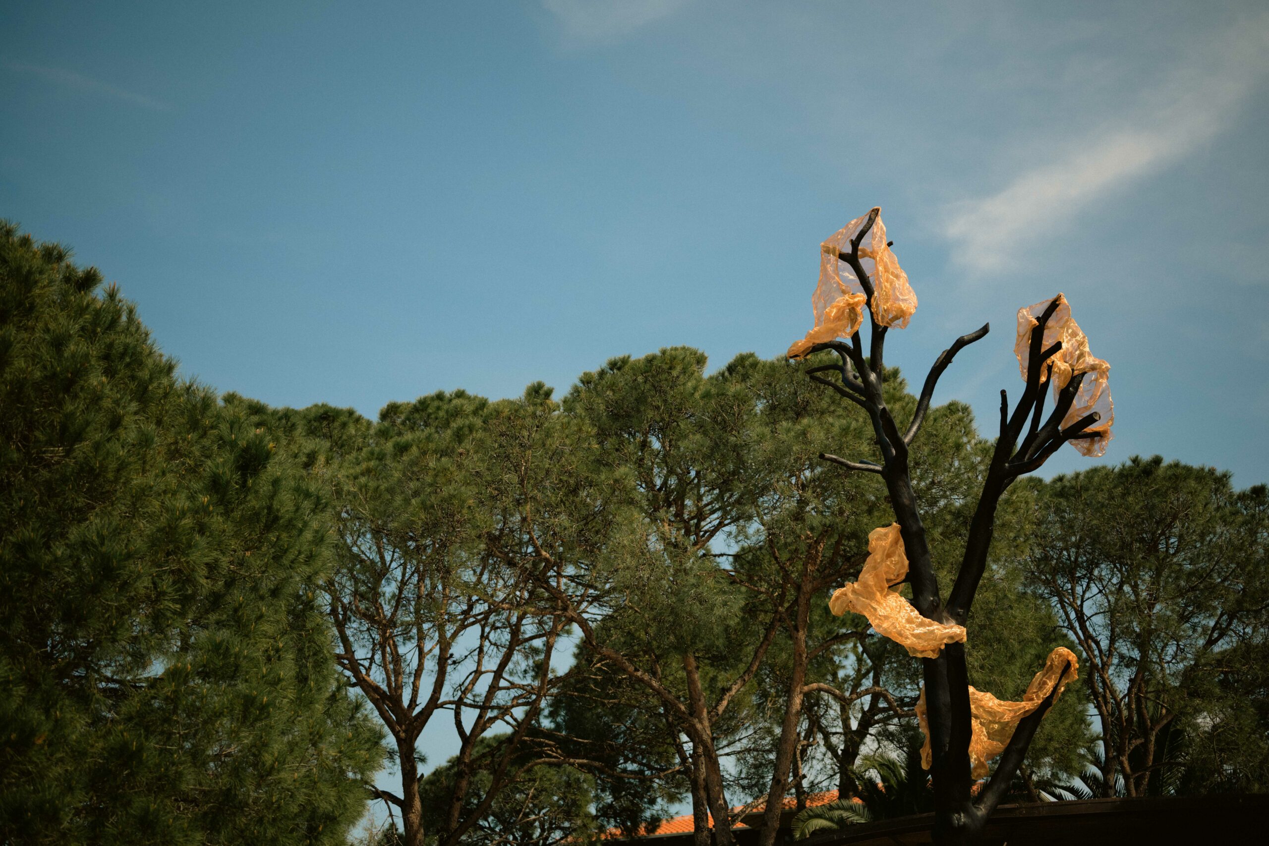 An art installation that pays tribute (homage) to the Pine tree as a symbol of resilience and regeneration. The Pinus Pinea tree is an integral part of the Mediterranean ecosystem and even more so of the coastal area where the ekies resort is found in Chalkidiki, Greece. Seeing one of these trees slowly die made me think of how important it is to preserve it, while transforming it in a symbol that represents the importance of these entities, but also its connection with fire.