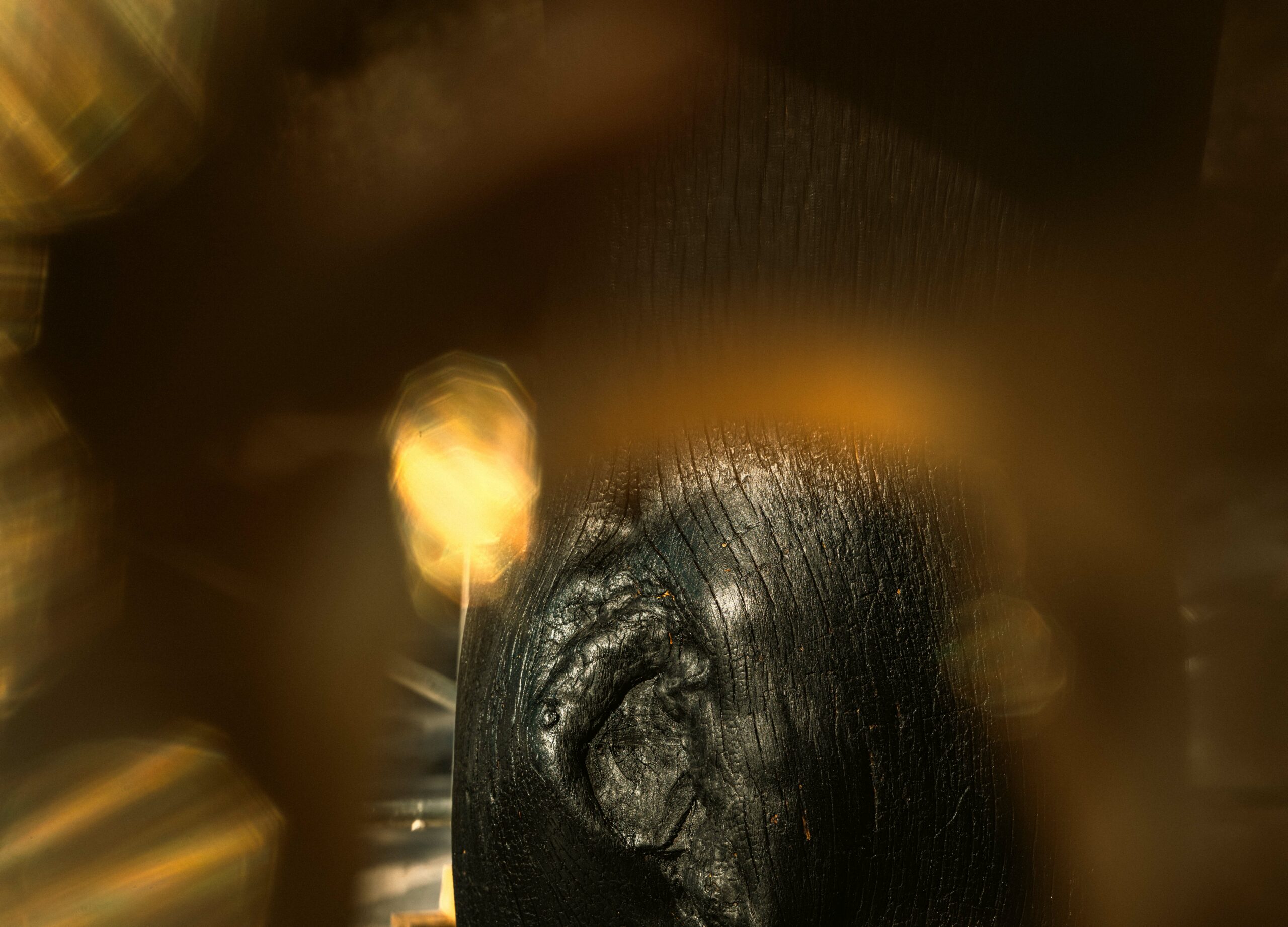 Without its pine needles and branches (which will become soil that will feed new plant life) the pine tree finds new life as a reminder for human beings of its value in the natural space but also as a warning on the danger of wildfires. The main body of the tree was first stripped of its bark and then burned on the surface in order to preserve the wood from decay. This is an ancient technique used in diverse parts of the world in order to preserve wood and especially widespread in Japan where it is known as Yakisugi.