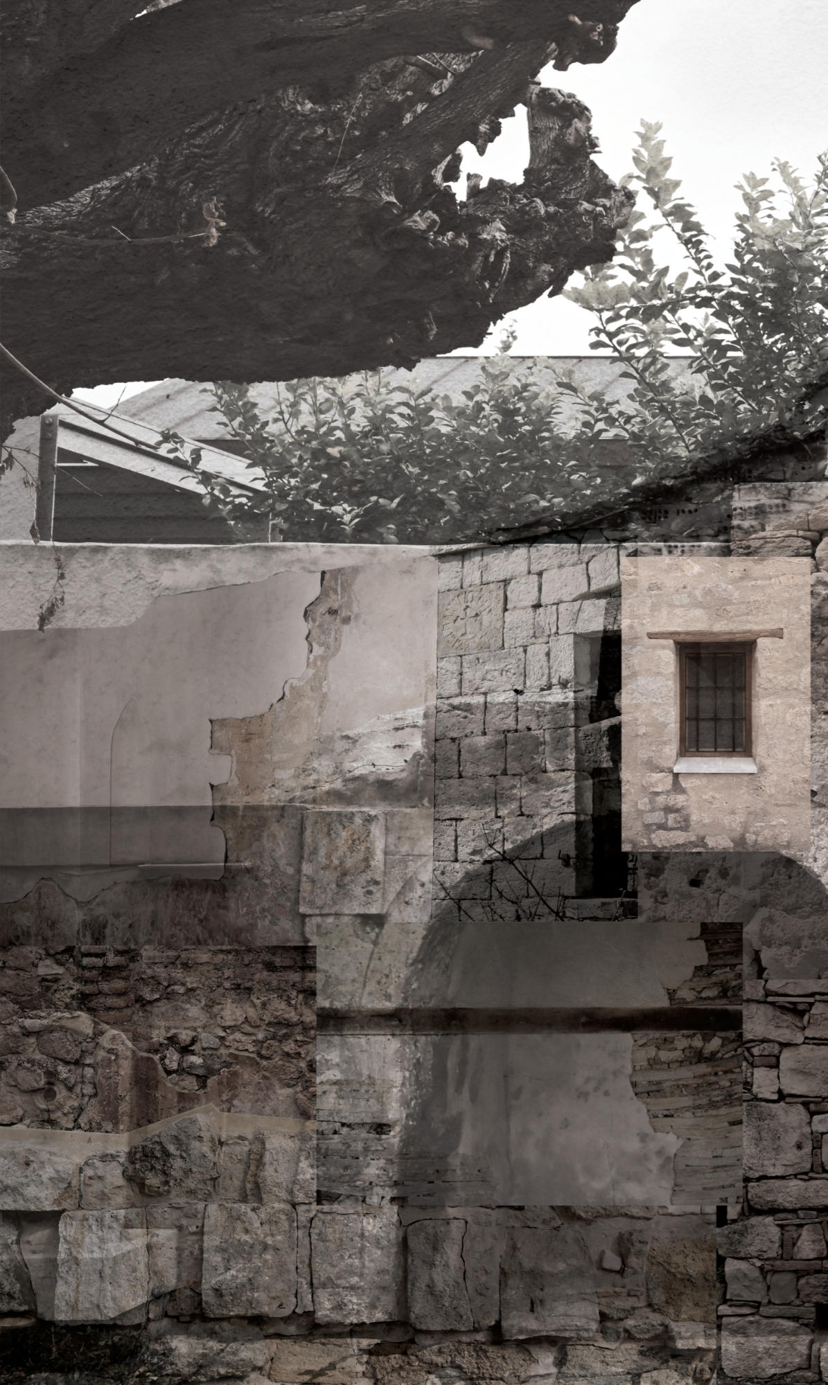 Two entities intermingled with each other. Tree & Stone. A primordial relationship that happens ‘naturally’ without apparent benefits but with ‘deep’ significance. The tree embraces the stone and the stone alters the tree’s existence in a continuous slow transformation for both entities. Organic and inorganic become one creating thus a new entity that characterises the surface of this planet. Parallel structures that find similarities in their external form through the alteration of time revealing a common past & future. A symbiotic co-existence that becomes the paradigm of a profound union laden with meanings.