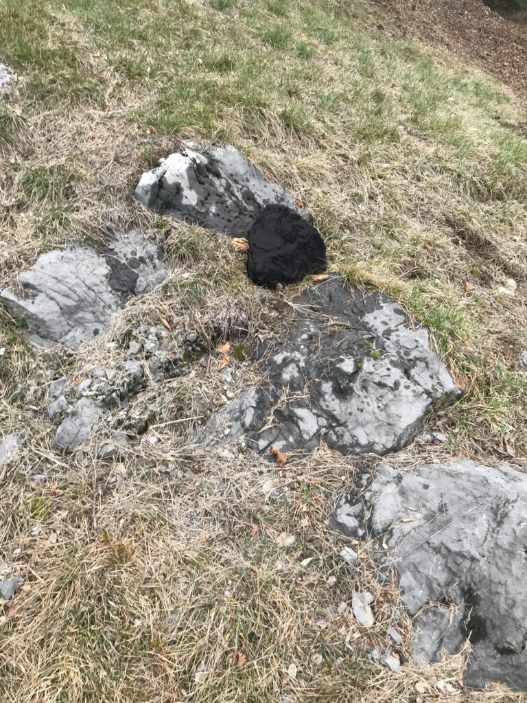 Without its pine needles and branches (which will become soil that will feed new plant life) the pine tree finds new life as a reminder for human beings of its value in the natural space but also as a warning on the danger of wildfires. The main body of the tree was first stripped of its bark and then burned on the surface in order to preserve the wood from decay. This is an ancient technique used in diverse parts of the world in order to preserve wood and especially widespread in Japan where it is known as Yakisugi.
